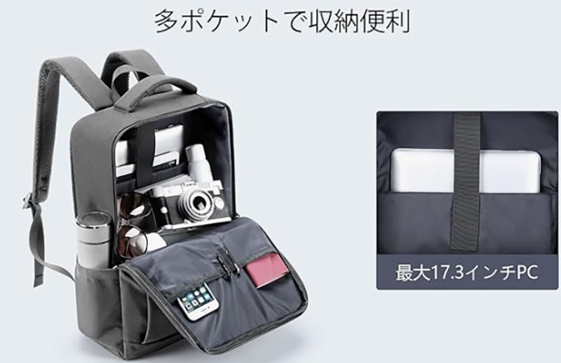 17.3インチの大型PCまで入る懐の深さと、背面の拡張ジッパーで25Lから30Lに化ける柔軟さが強みです