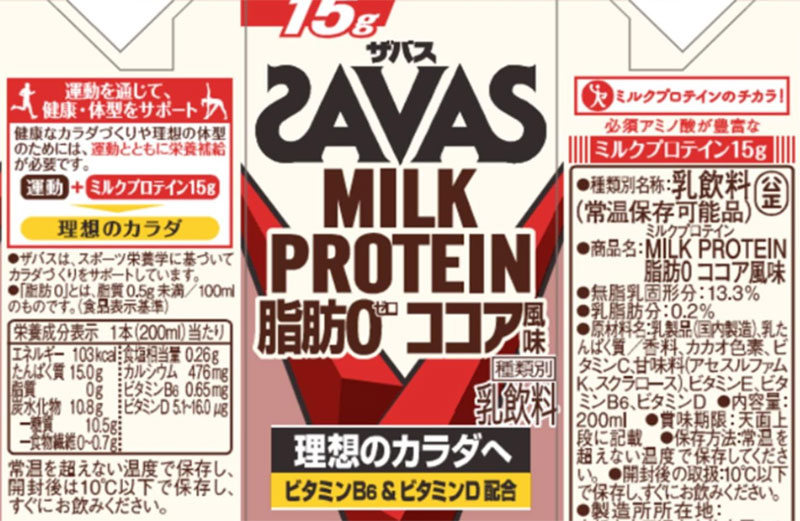 SAVASシリーズの看板フレーバーがココア風味です。取材したジムトレーナーいわく、初めてミルクプロテインを試す人の9割はこれから入るとのこと。