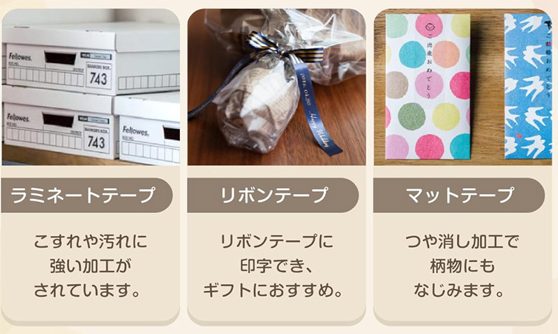子どもの工作やお名前シール用途にはカラー柄の純正テープを1本混ぜると一気に楽しくなります。